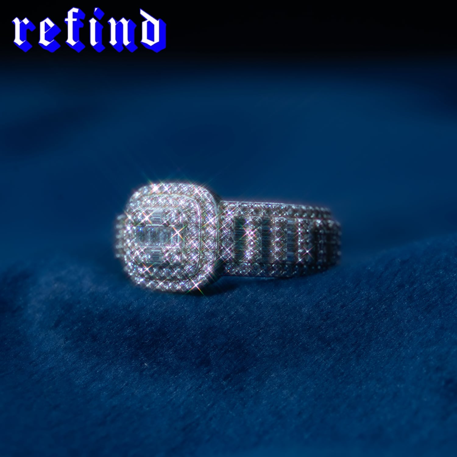 バゲットカットのVVSモアサナイトを全体に使用し、ラグジュアリーな雰囲気を演出。