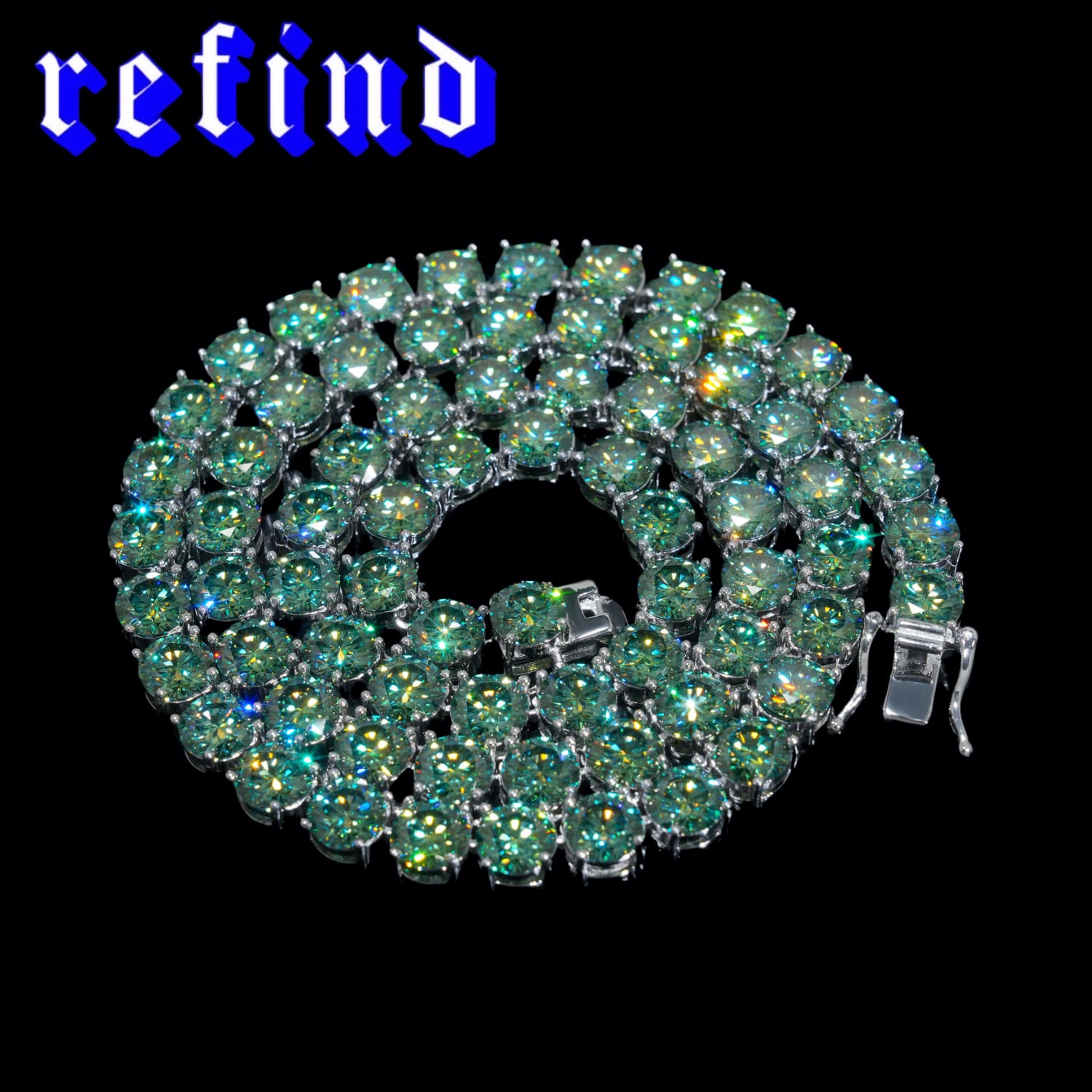 ダイヤモンドの2.5倍の輝きを放つ最高品質グリーンモアサナイトを使用した幅6.5mmテニスネックレス。