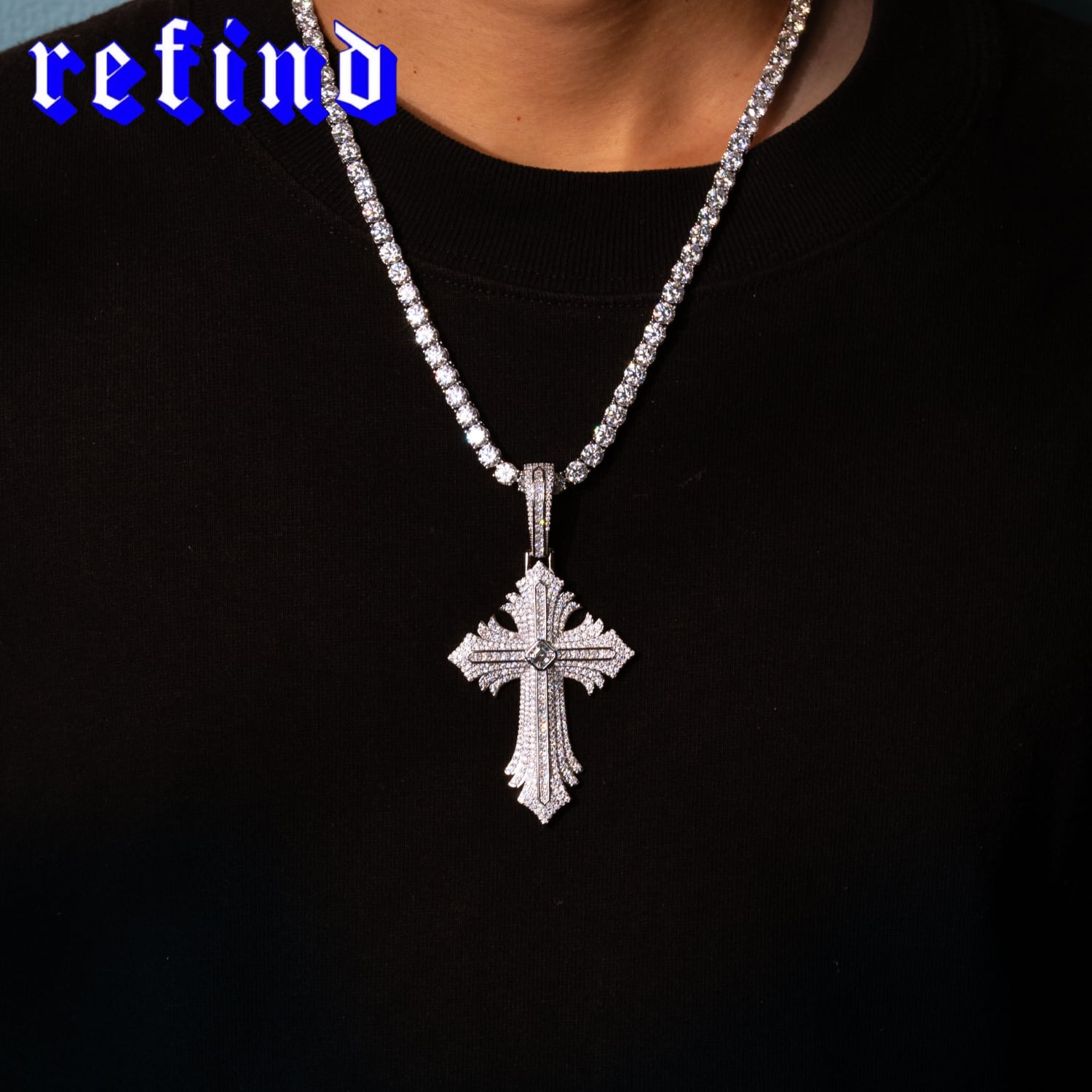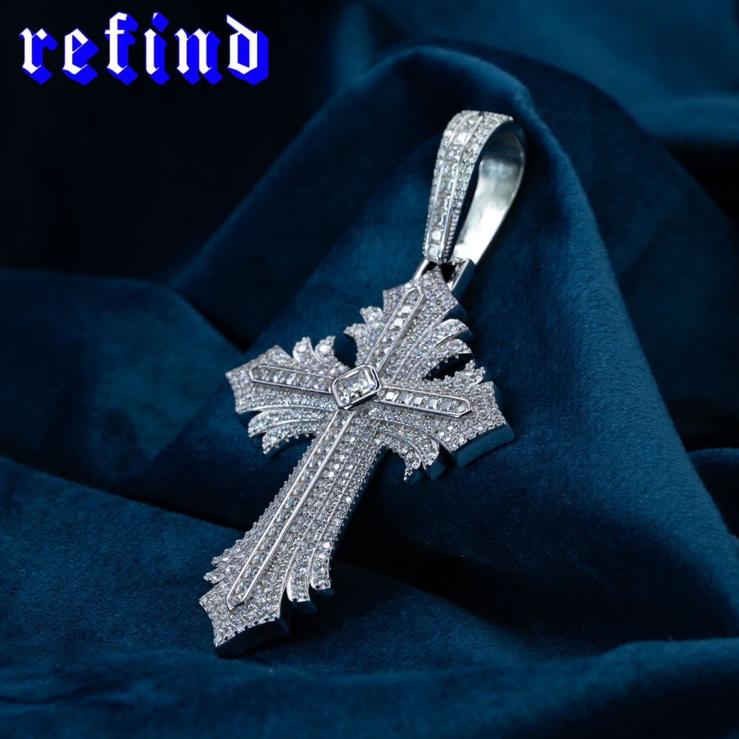 ダイヤモンドの2.5倍の輝きを放つ最高品質モアサナイトを使用したクロスペンダント。