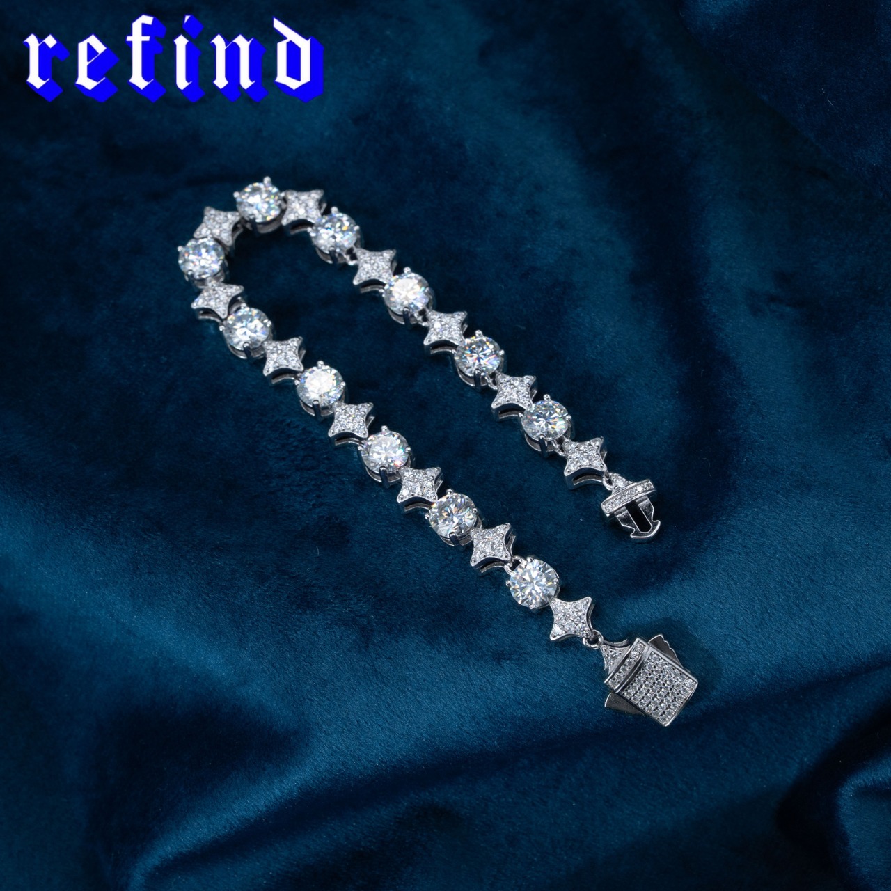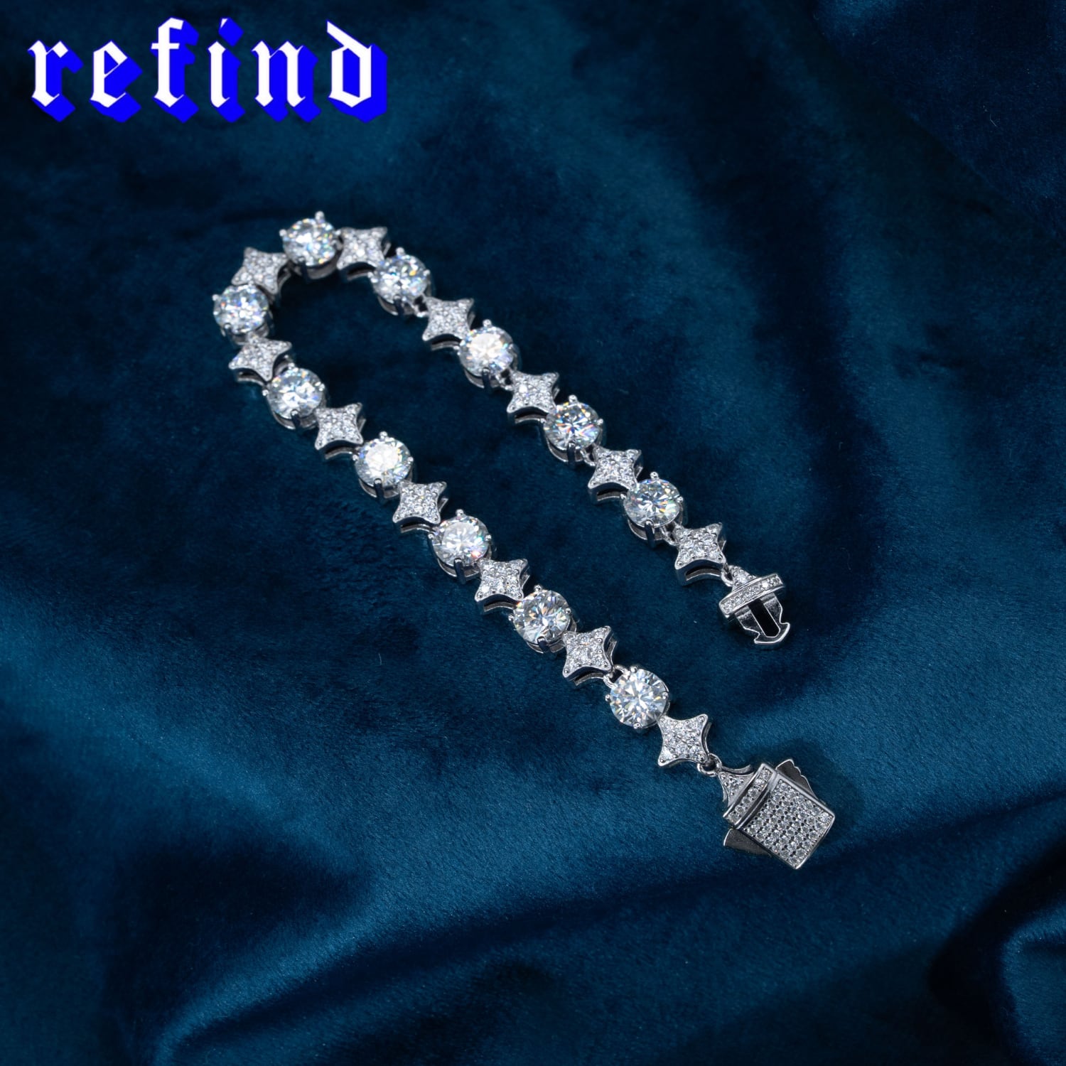 ラウンドカットのモアサナイトと星型モチーフのモアサナイトが交互に並び、豪華でストリート感もあるネックレス。