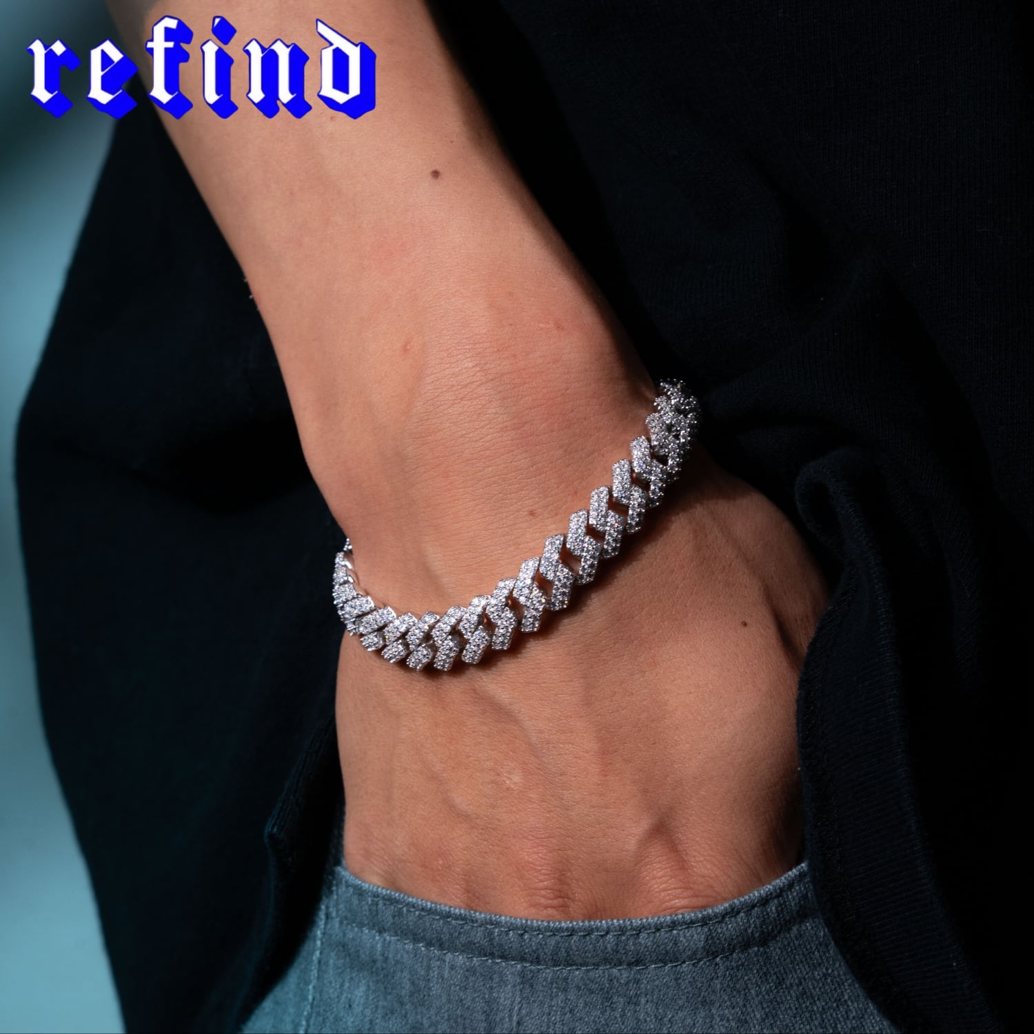 ダイヤモンドの2.5倍の輝きを放つ最高品質モアサナイトを使用した幅10mmキューバンリンクブレスレット。