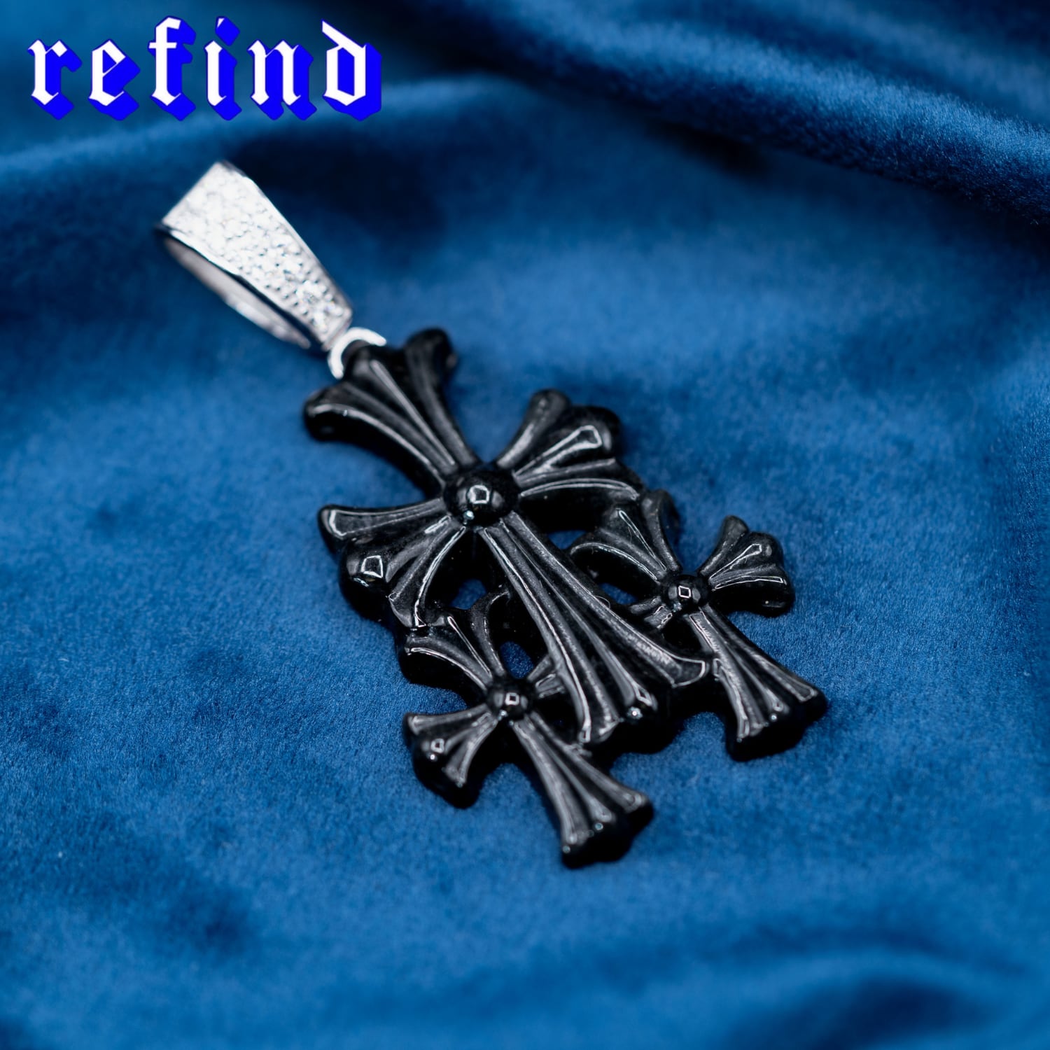 【即日発送】Black Jade Triple Cross Pendant【Silver/Gold】