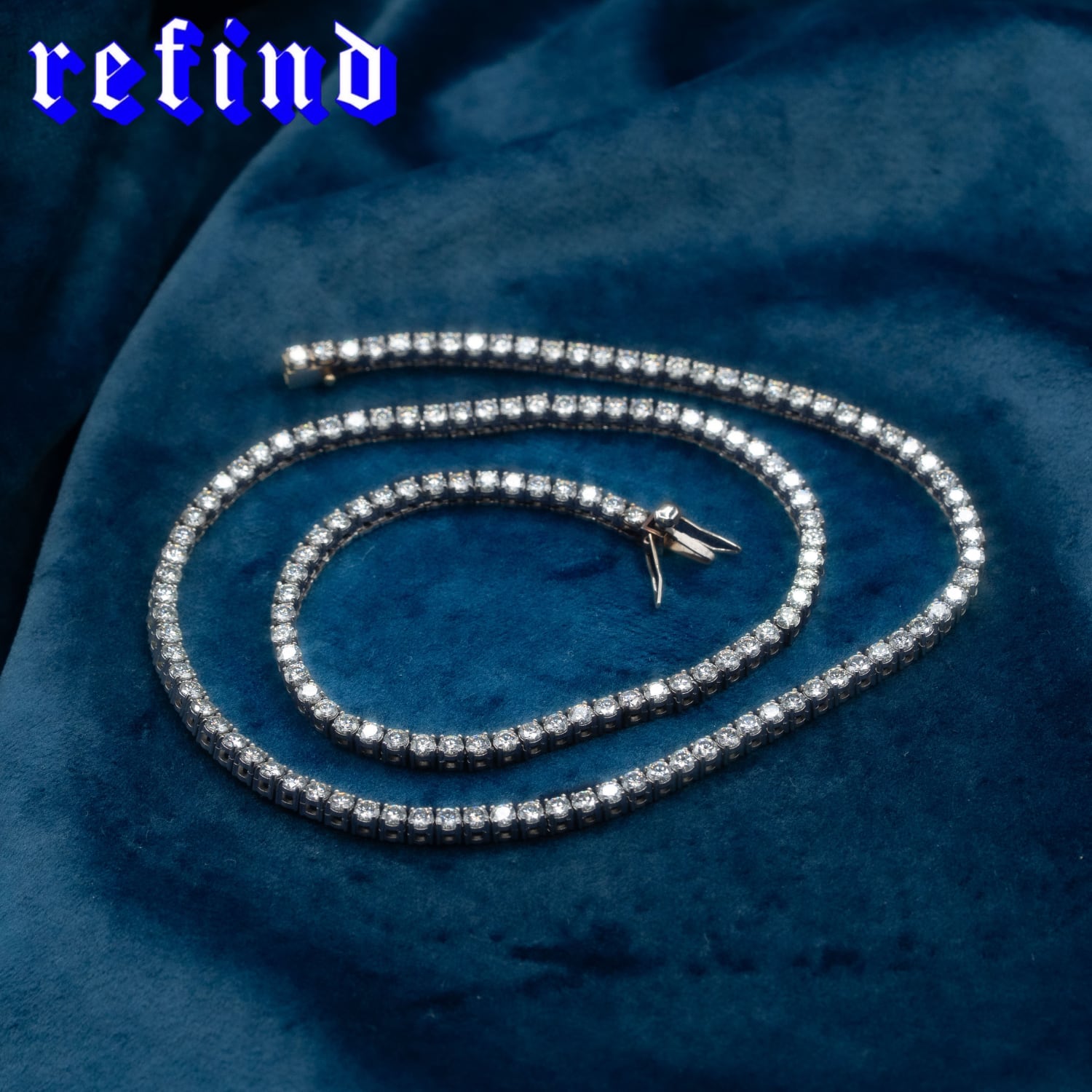 ダイヤモンドの2.5倍の輝きを放つ最高品質モアサナイトを使用した幅3mmのテニスネックレス。